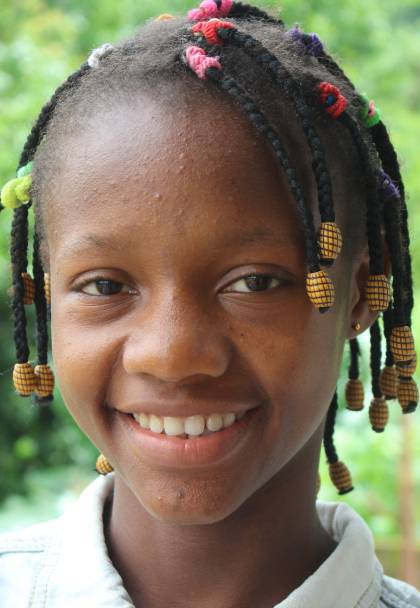 Mariama (MM) (who goes by M.M.) is the eldest daughter of Mamaland. She arrived at Mamaland when both of her parents, as well as several other family members, had died from Ebola. Although she can’t remember them, she has been told that her parents were hardworking farmers who died within one week of each other. M.M. just passed her secondary entrance exams with flying colors. She is nurturing, serving as a strong role model by leading her sisters with devotion and responsibility. “I was a Muslim before but I knew that God had sent these people to help me. Jesus and Grandma’s faith have changed my life. My dream is to help people like Grandma (Dorcas), to be a doctor one day and run the Narsarah Clinic. I want to fight for the rights of women and girls since they are often not treated well here. Please pray that I will work hard and then come back and help my people.”